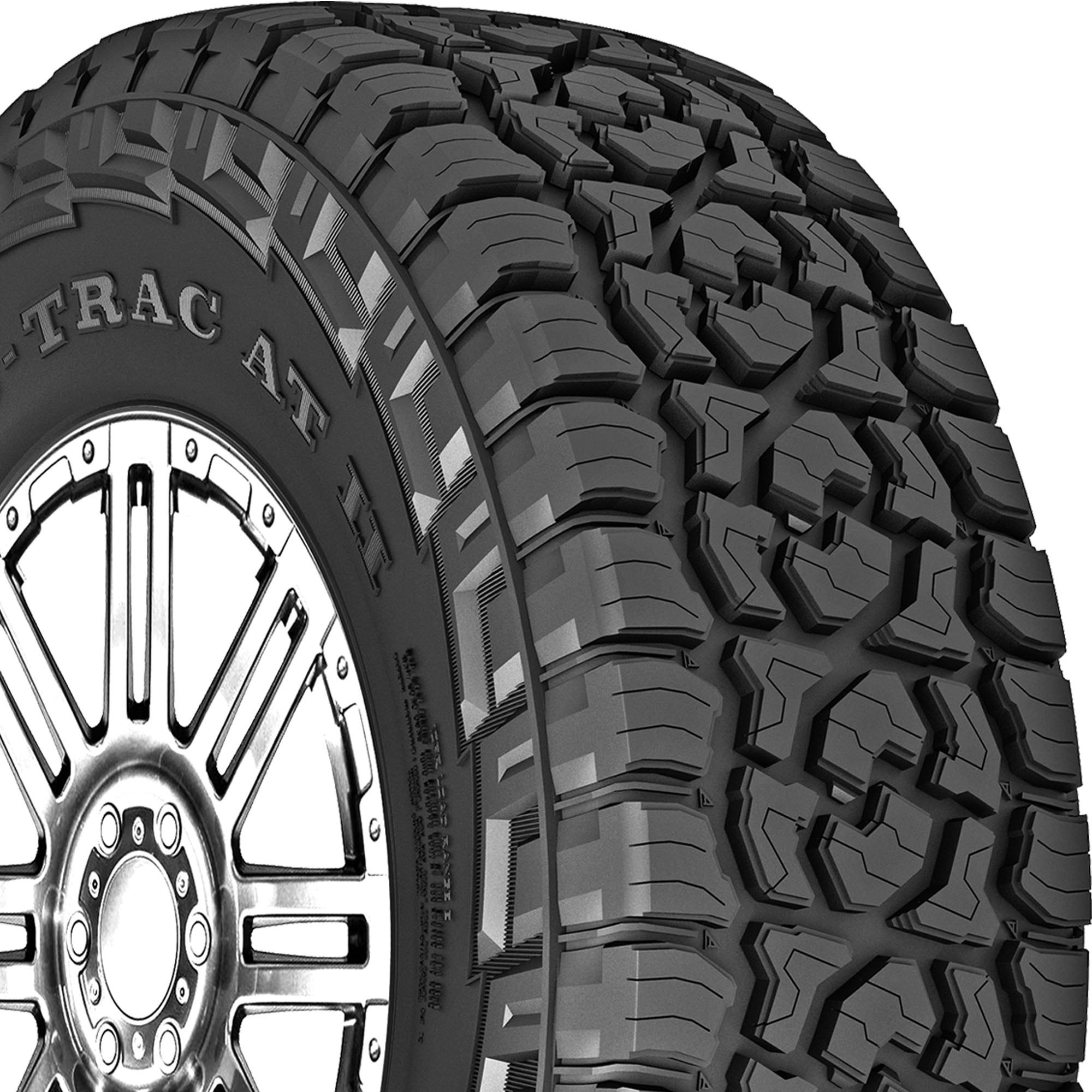 The Armstrong Tru-Trac AT II is an all-terrain tire designed for light trucks and SUVs. This tire features an aggressive block pattern for confident handling on mud, gravel, and uneven terrain. Its dynamic tread design, complete with rigid shoulder blocks, enhances grip while withstanding road impacts. The Tru-Trac AT II is engineered with a special groove pattern that minimizes road noise, ensuring a smooth and quiet ride. In addition, it has reinforced sidewalls that provide extra protection against potential damage and a specialized rubber compound that increases resistance to tearing and friction.