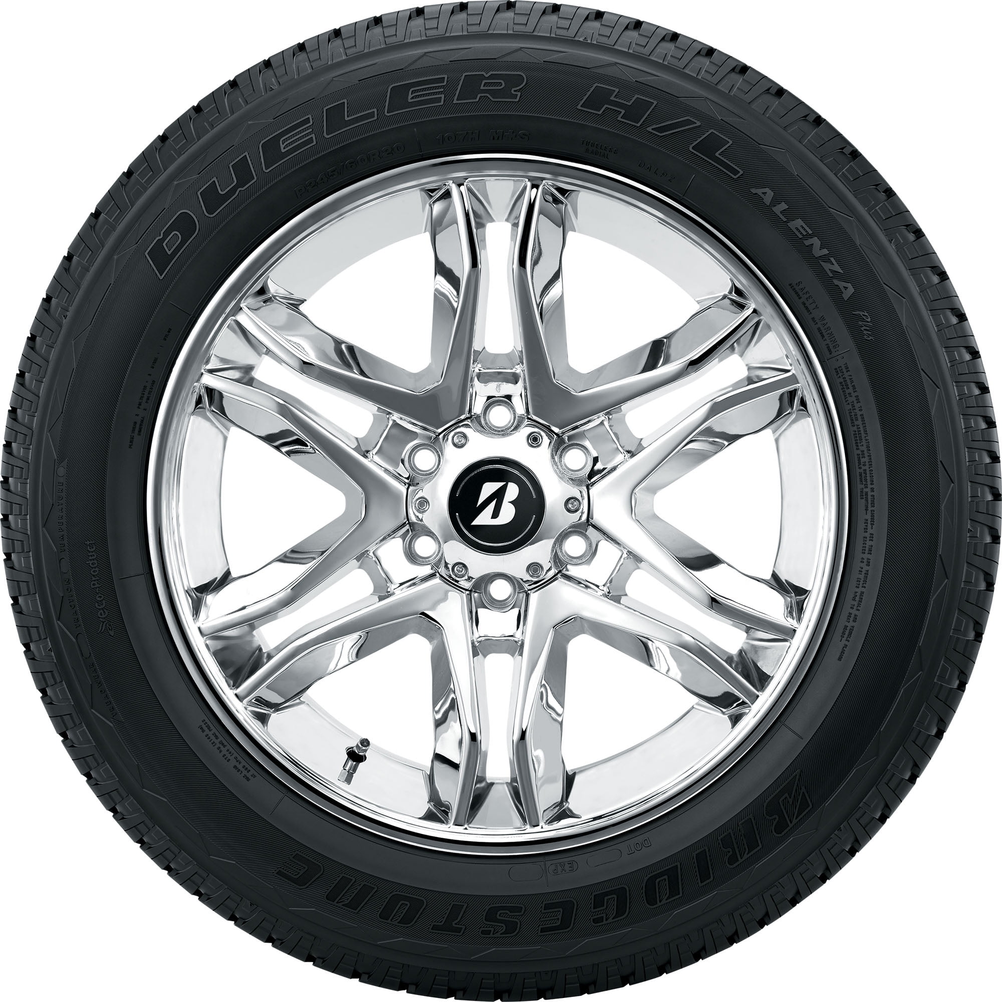 The Bridgestone Dueler H/L Alenza Plus tire delivers all-season performance for light trucks, SUVs, and crossovers along with touring-tire levels of comfort and quiet. The Dueler H/L Alenza Plus is packed with features like Bridgestone’s Long Link Carbon tread compound for low rolling resistance and long wear, O-Bead single strand bead wire, circumferential tread grooves, and a continuous spiral-wound nylon wrap for enhanced stability. Where the rubber meets the road, the Dueler H/L Alenza Plus features a solid center rib that boosts straight-line stability, plus large shoulder blocks and a dual-layer tread area that improves heat dispersal for lower rolling resistance. Additionally, the Dueler H/L Alenza Plus is backed by up to an 80,000 mile limited manufacturer tread life, depending on the tire’s speed rating.