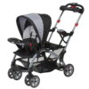 The Bravo® Stroller showcases large, sleek wheels with treaded tires and all-wheel suspension to navigate uneven terrain. Rear-linked foot brakes secure the stroller with a simple tap and the multi-position push handle adjusts in height for parent comfort. The large storage basket features 2 organizer pockets, mesh sides for visibility and easy front & rear access.