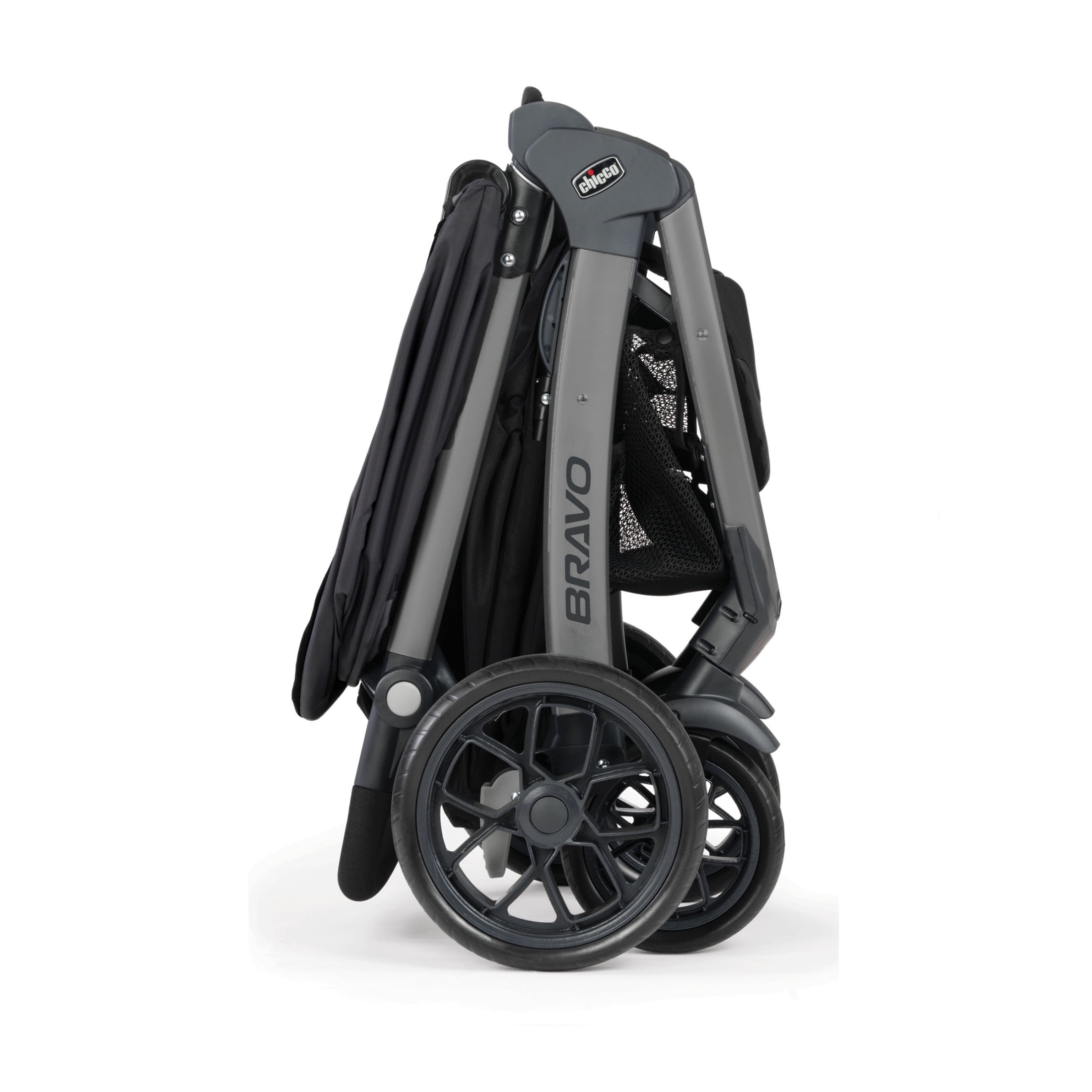 For additional parent convenience, the Bravo® Sport Stroller has a one-hand smart fold with auto-swivel front wheels and stands independently on the wheels without the parent handle touching the ground. The large storage basket features 2 organizer pockets, mesh sides for visibility and easy front & rear access.