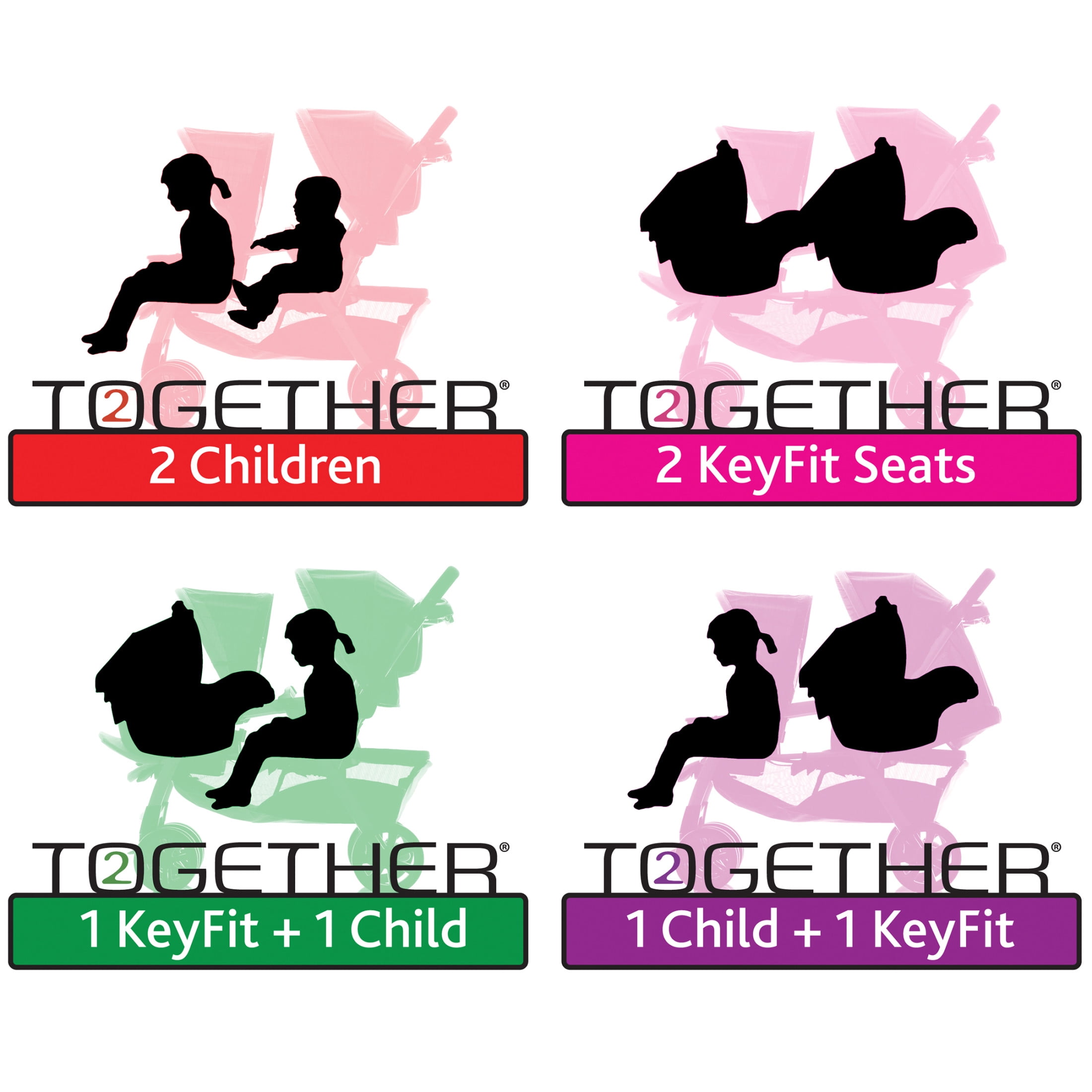 For infants, the stroller accepts any two Chicco infant car seats (sold separately). The front seat folds forward and the rear seat reclines to accept the car seats with secure click-in attachment. No adapters needed!
