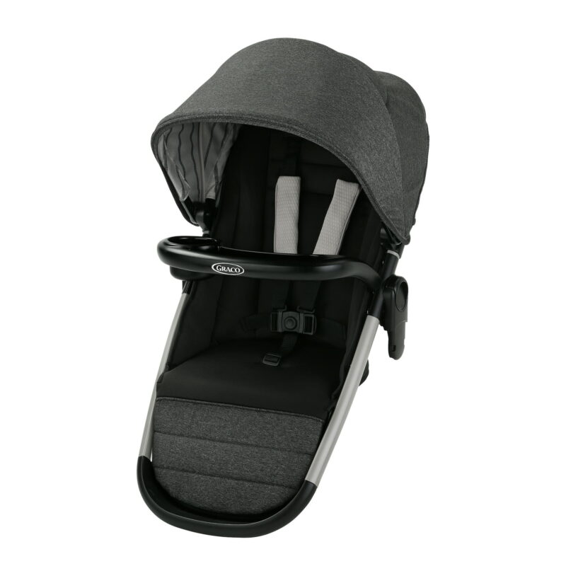 The Graco Modes Nest2Grow Stroller Second Seat allows you to expand your Modes Nest2Grow Stroller or Travel System into a double stroller. No adapters are needed. Streamlined stacked seating provides a similar view for both children and makes getting in and out easier. The seat can be positioned so baby can face you or the world, and can be paired with the stroller in 15 different ways to perfectly suit your family’s needs. The multi-position reclining seat helps keep your little one comfortable. The removable child’s tray with cup holder keeps drinks and snacks within reach, and the canopy has 2 positions for sun protection.