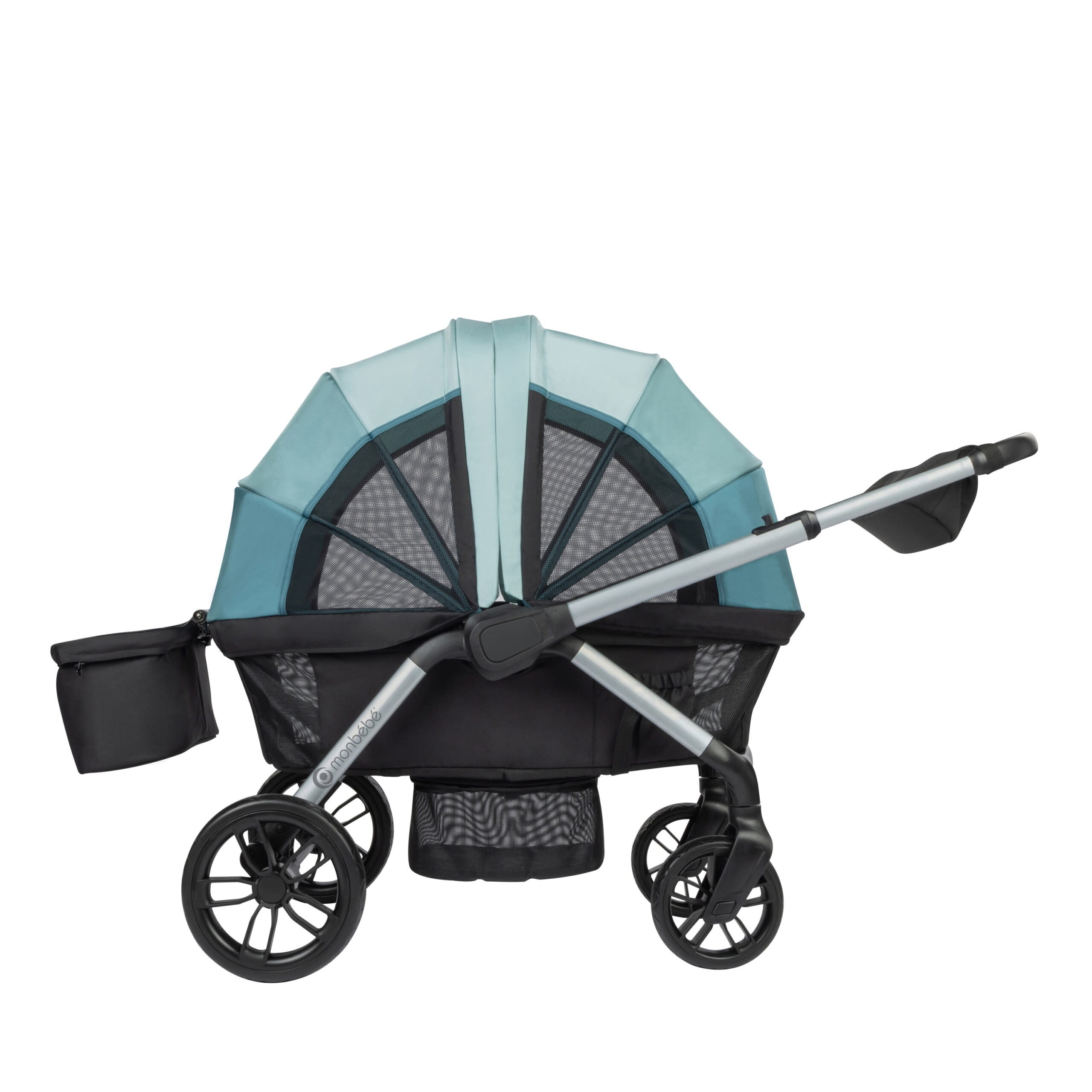 In between adventures, the Monbebe Everyday Outings Wagon Stroller easily folds up for compact, self-standing storage. Assembled weight 32.85 lbs.