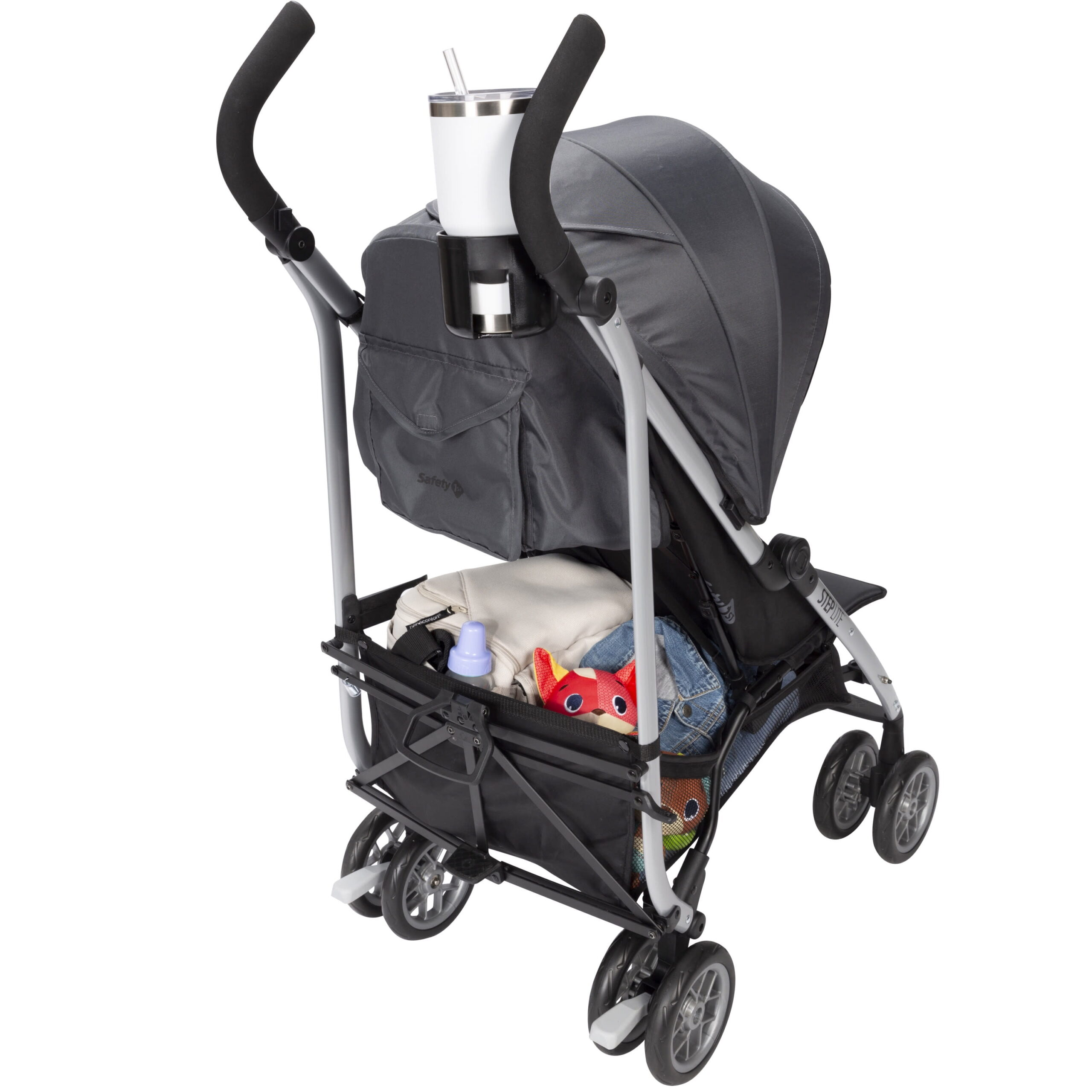 With the extra-large canopy, your child will sit comfortably in the shade even on sunny days. The peek-a-boo window lets you quickly look in and exchange a smile or two. There’s plenty of room in the storage basket for diapers, extra clothes, and everything you need along the way. You can also store small personal items in the covered pocket attached to the back of the seat.