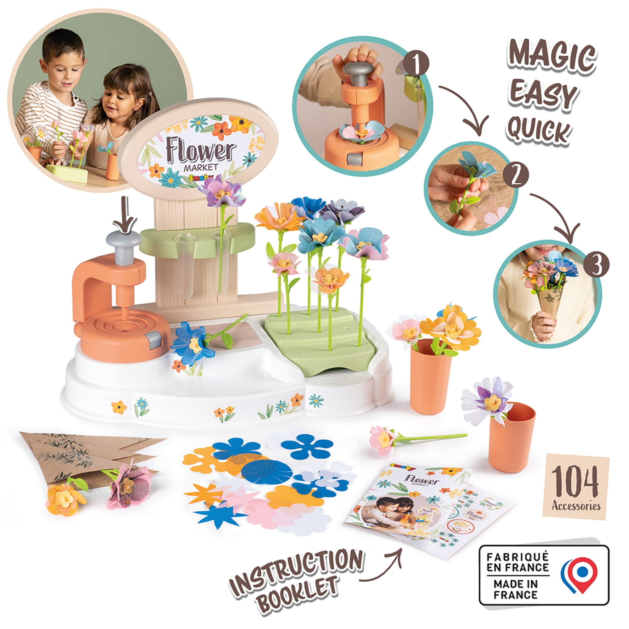 SMOBY: Flower Market - Kids DIY 100 Piece Set, Build Your Own Fabric Flower Bouquets, Arts & Crafts For Ages 3+