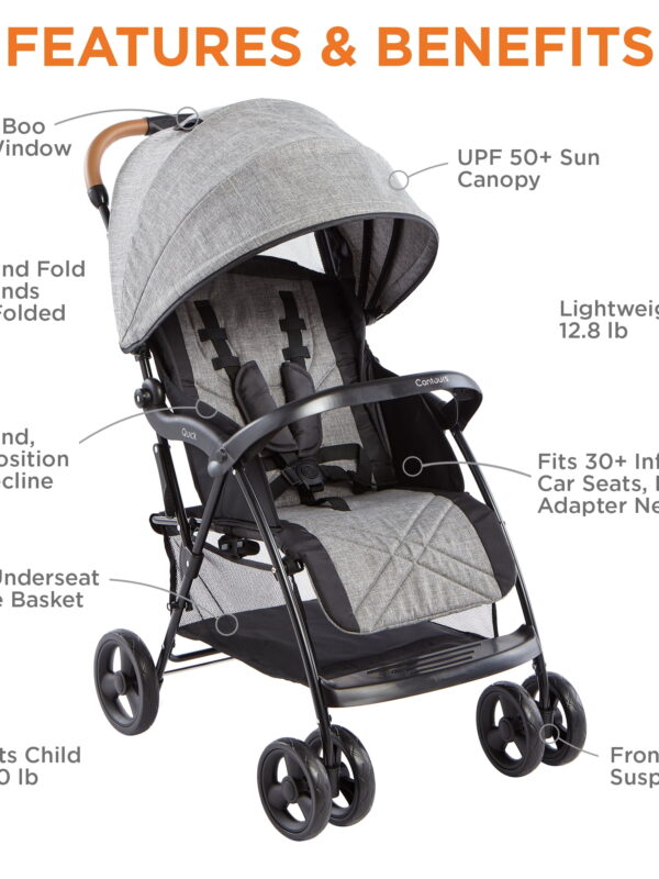 • Contours Quick® Lightweight Travel Stroller, Compact Newborn Stroller, Gray